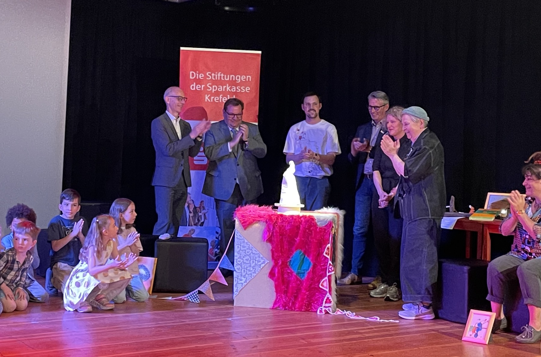 Die anwesenden Kinder präsentierten stolz ihre Kunstwerke und spielten sogar bei den kurzen Szenen des Improtheaters mit Silvia Westenfelder und Thomas Jansen.